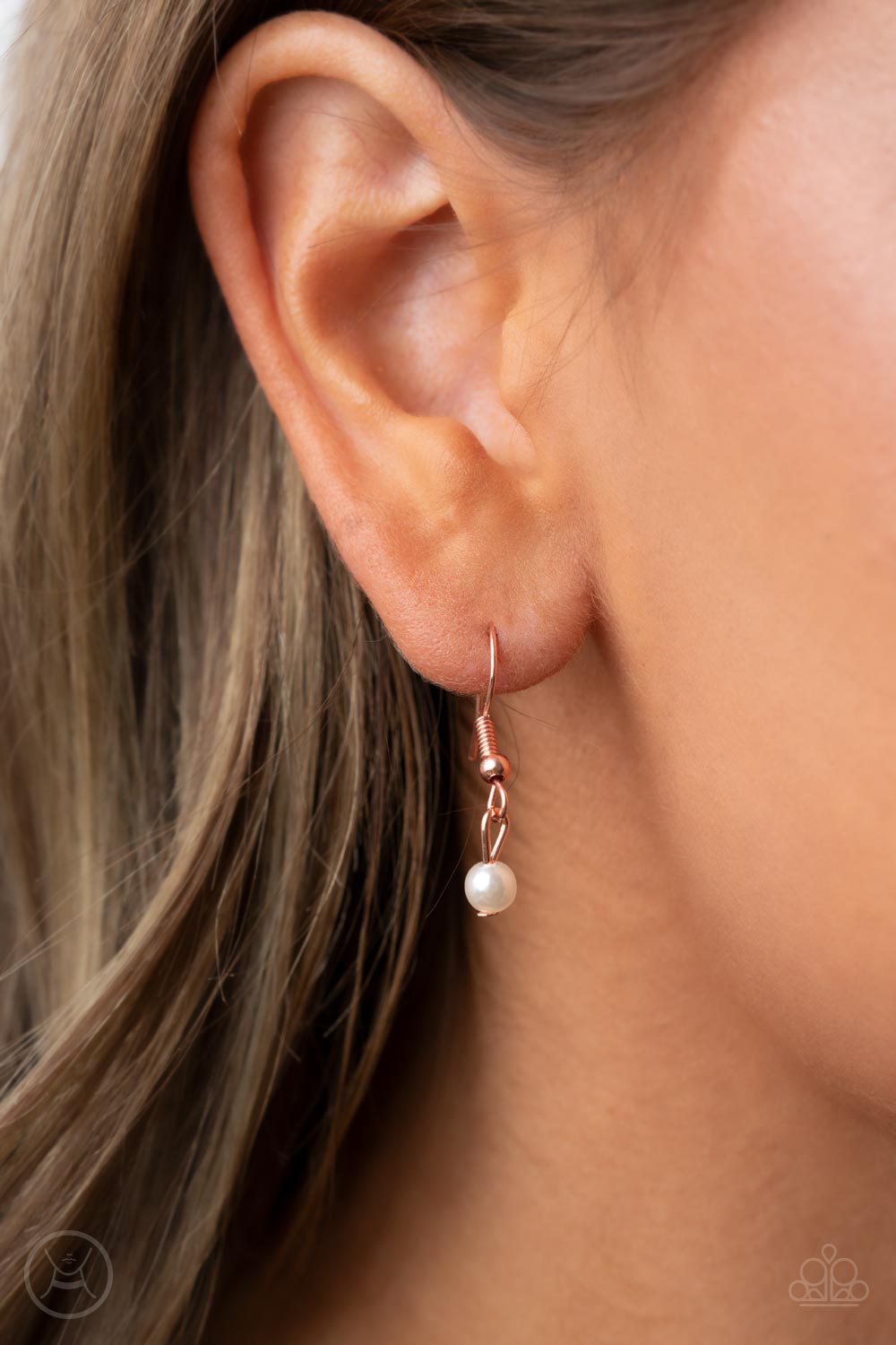 Infused with a single strand of white pearls, dainty shiny copper chains layer around the neck for a timeless twist. Features an adjustable clasp closure.